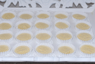 Now we begin to put it all together! Place your sponge cakes, topside down, into some paper cases. I got mine from Wilton, I think they are called candy cases.