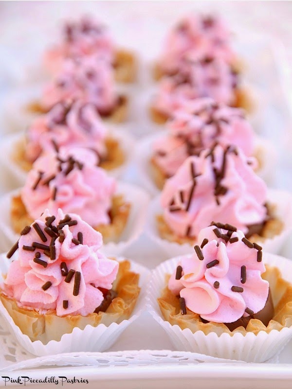 in fillo cup on top of the chocolate kiss.