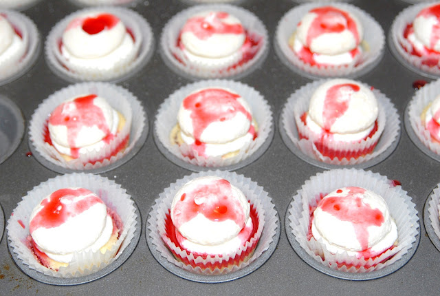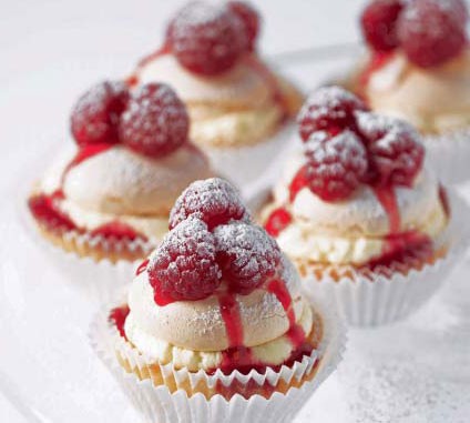My fascination with little pastries continues here at Pink Piccadilly Pastries and today I bring you some delicious Mini Raspberry Pavlovas. They are similar to the French Bonbons I made recently, but are even better! They have a pound cake base in the form of a mini cupcake, topped with lightly sweetened whipped cream, topped with a meringue cookie disc, and finally finished with a drizzle of Raspberry Coulis, fresh raspberries and a sprinkling of powdered sugar!! Phew!! But seriously, they are not difficult! Really! You can do this!