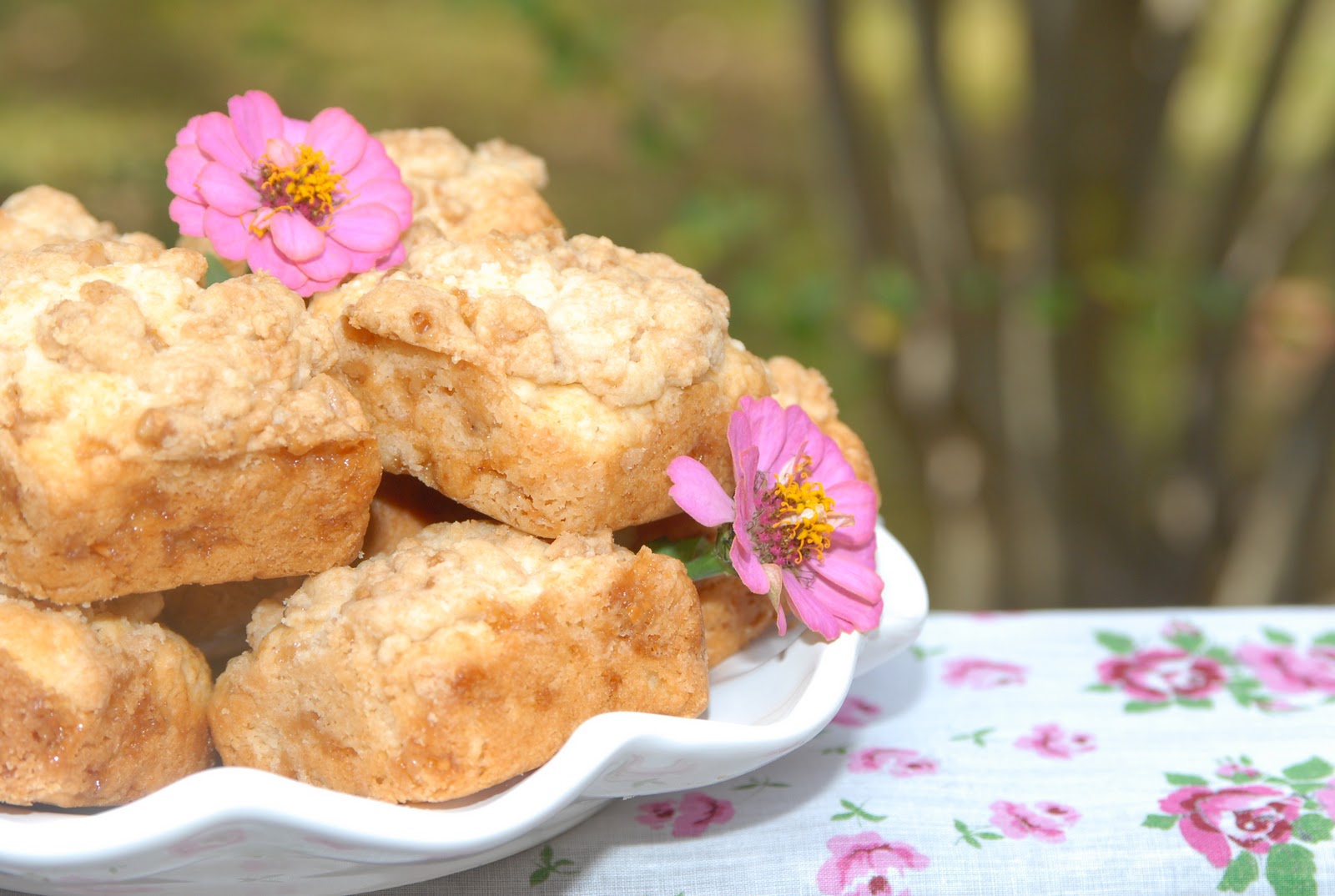 Add a heaping tablespoon of the crumble to the top of the scones and bake in a 375 degree oven for 15-20 minutes or until lightly browned.