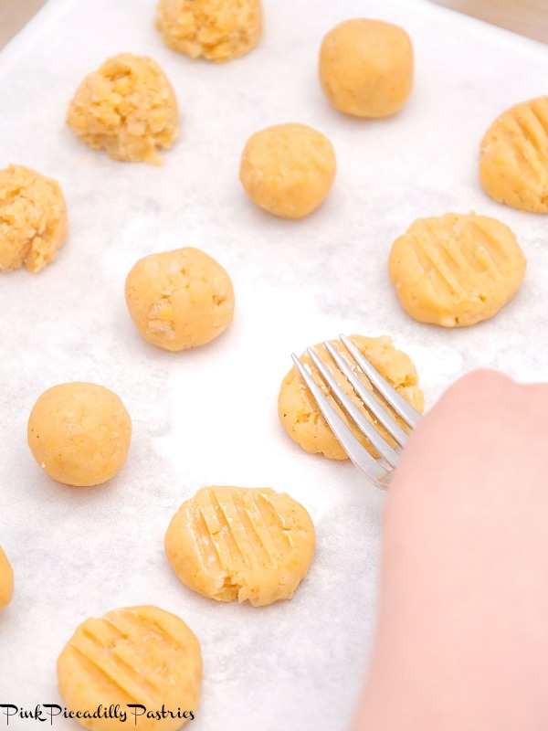 into balls then flatten with a fork dipped in flour.